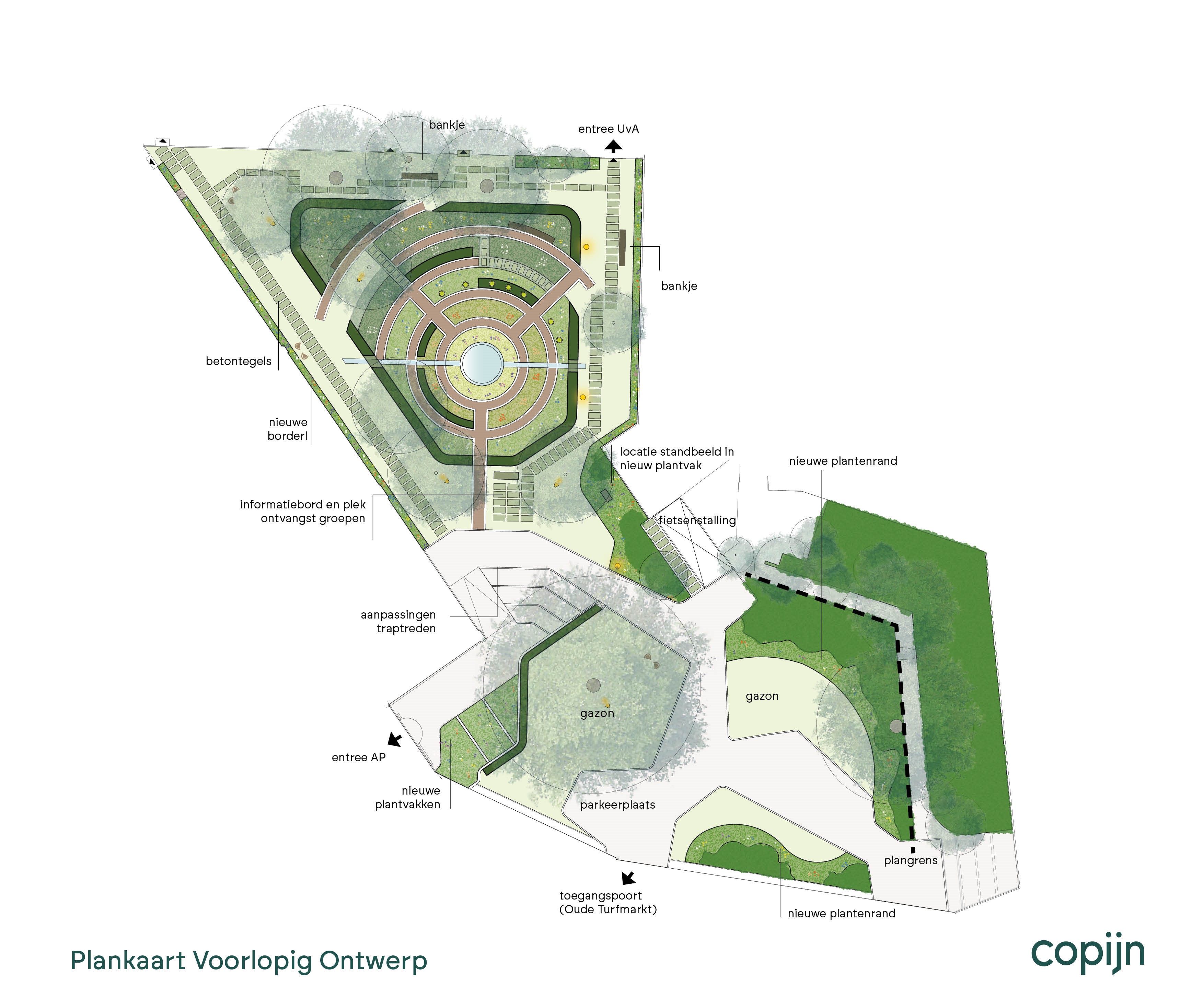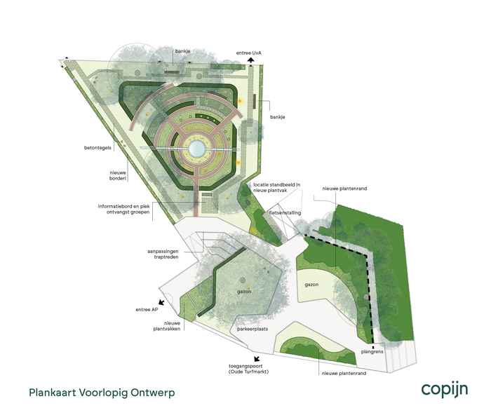 De Hortus Medicus wordt een aangename groene buitenruimte, ingetogen aan de zijde van de woningen en levendiger aan de zijde van het museum.